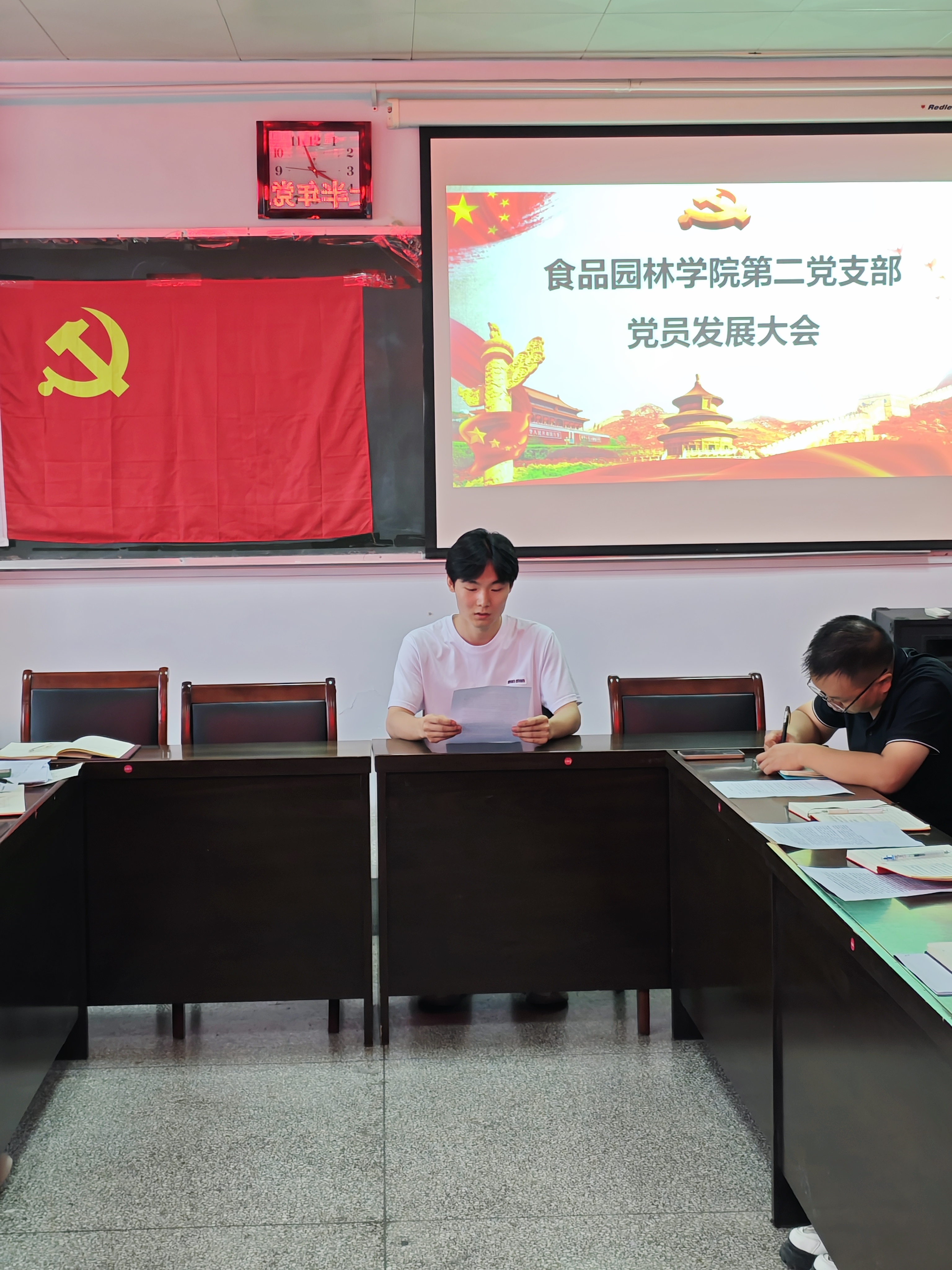 会议伊始,党支部书记陈玉琴介绍了会议的议程和相关要求。随后,发展对象李晨飞、李政、宋慧豪、李培垚依次宣读了预备党员申请书,汇报了自己在成为发展对象的思想、学习、工作和生活等情况,分享了成长进步的经历和体会,并表达了继续以党员标准严格要求自己的决心。