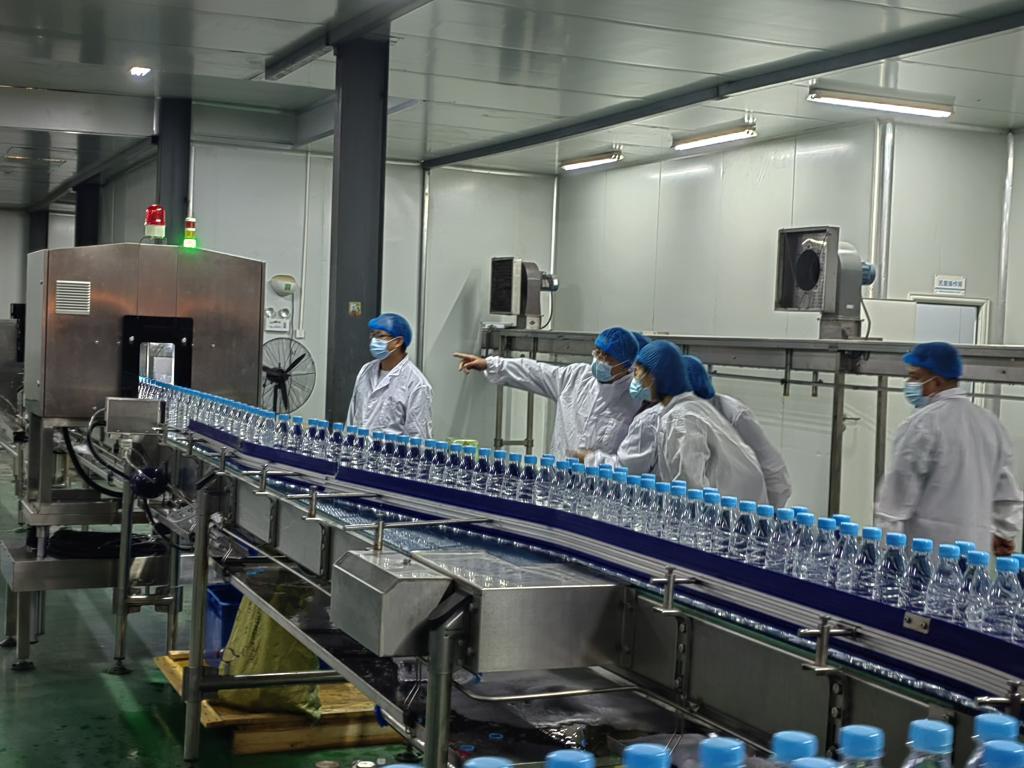 在甘露水厂负责人的陪同下,辛峰院长一行参观了水厂的现代化生产车间、水质检测实验室及智能化灌装流水线,详细了解了饮用水生产的工艺流程、质量管控体系及行业技术发展趋势。甘露水厂作为本地知名饮用水企业,始终坚持高标准生产,其先进的管理理念与技术创新能力给学院教师留下了深刻印象。