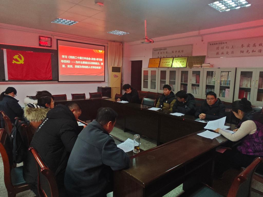 第三项:为深入学习贯彻党的二十届三中全会精神,由党员冯红丽同志带领全体党员学习《党的二十届三中全会<决定>学习辅导百问》——为什么要建立以创新能力、质量、实效、贡献为导向的人才评价体系?