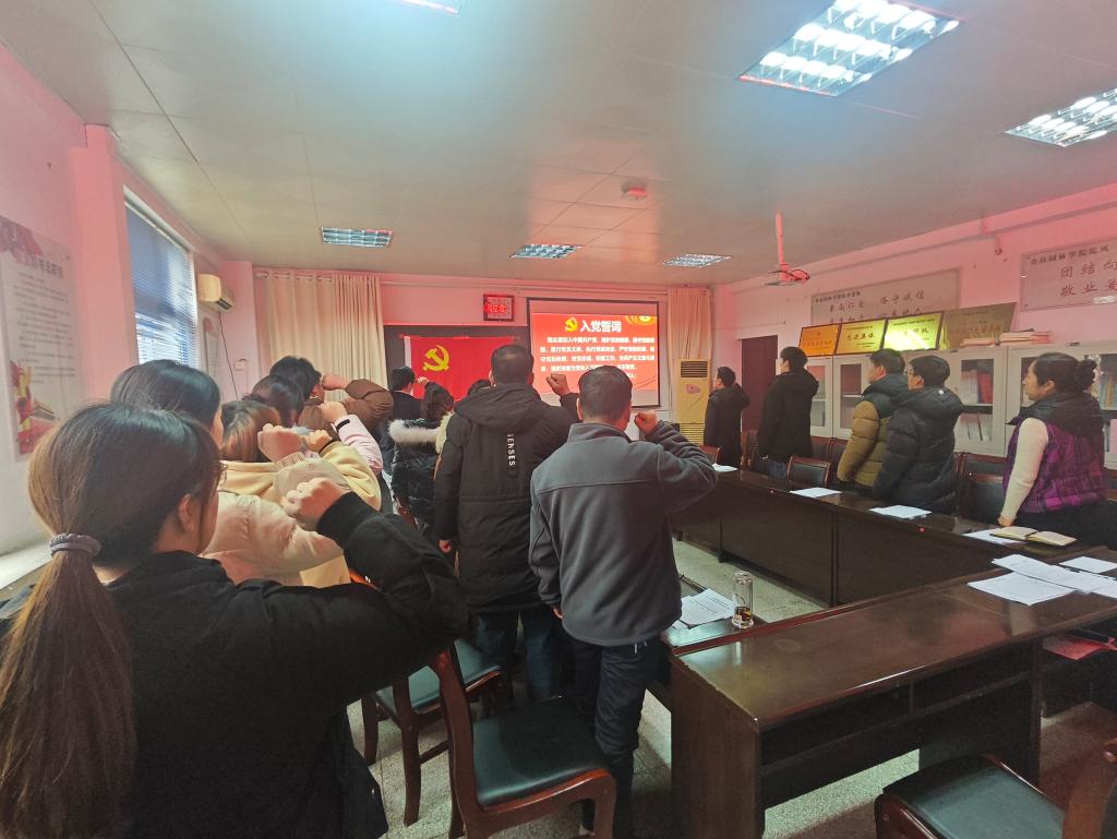 第五项:全体党员列队面向党旗,由党总支副书记辛峰同志带领全体党员重温入党誓词。