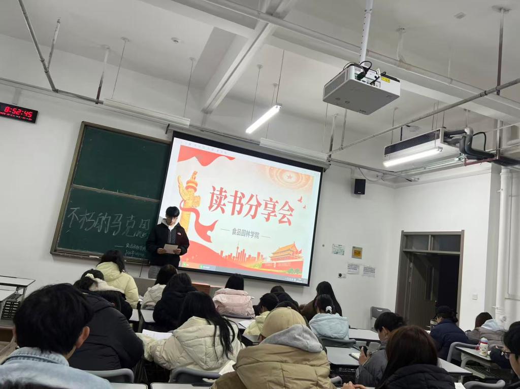 入党积极分子邢文奥聚焦《摆脱贫困》一书,带领大家重温书中“弱鸟先飞”“滴水穿石”的奋斗精神。他结合食品园林专业特色,提出青年学子应立足专业所长,主动将理论知识与乡村振兴、生态保护、食品安全等民生领域相结合,用扎实的专业能力和脚踏实地的实干精神助力地方发展。