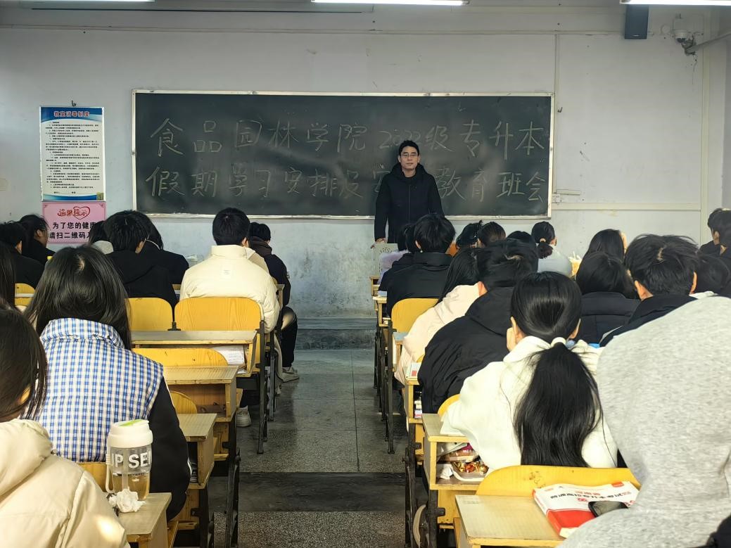 院长辛峰在会上着重强调安全与学业两方面要点。在安全层面,他从防溺水、防火、防煤气中毒、用电安全、交通安全、饮食安全及自我保护等方面展开细致讲解,提醒同学们离校时关闭电源门窗,防范财产安全隐患。面对即将来临的专升本考试,辛峰院长指出时间紧迫、任务艰巨,鼓励同学们珍惜时光,善用各类资源平台提升自我,全力备战以增强应试能力。