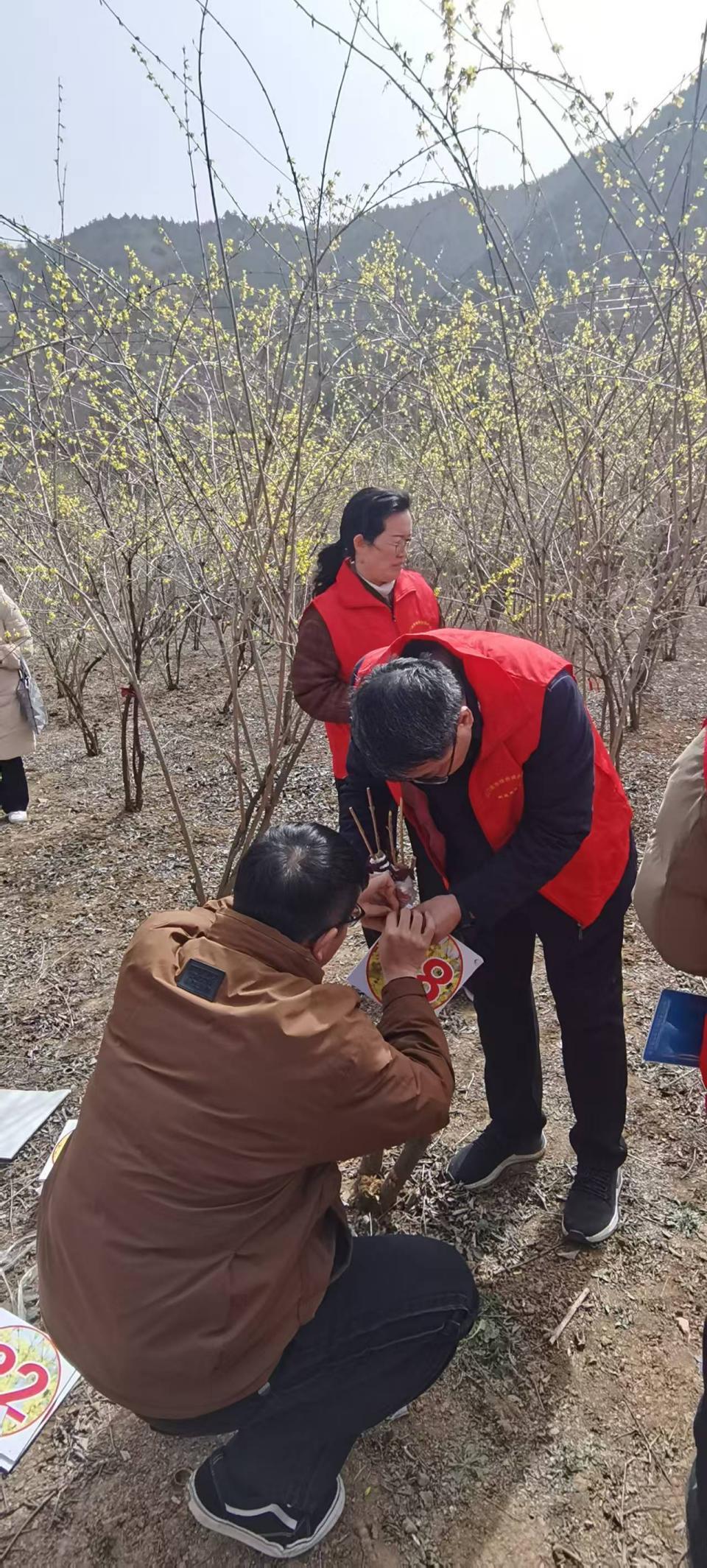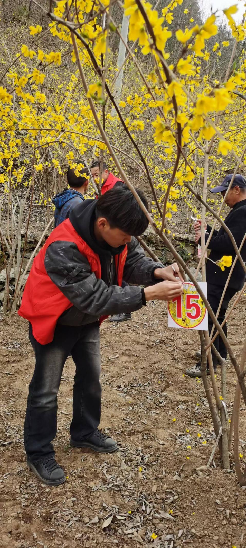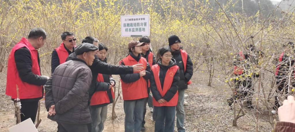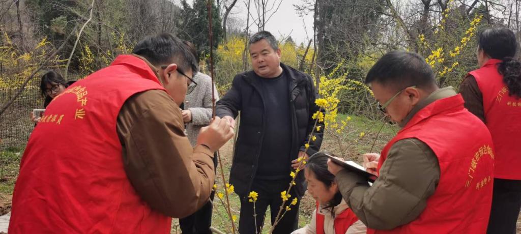第二天,科技服务团队成员来到了杜关镇,与政府农林办李主任进行座谈交流,李主任就杜关镇连翘产业化发展遇到的问题与团队成员进行深入的探讨。同时,在杜关镇防冷害监测基地挂牌,持续跟进监测农户开展连翘栽培防冷害技术推广,与种植农户建立长期且稳定的联系,解决连翘生长过程中的问题。一位农户激动地说,学习了怎样应对后,再也不怕倒春寒了,非常感谢你们的到来。