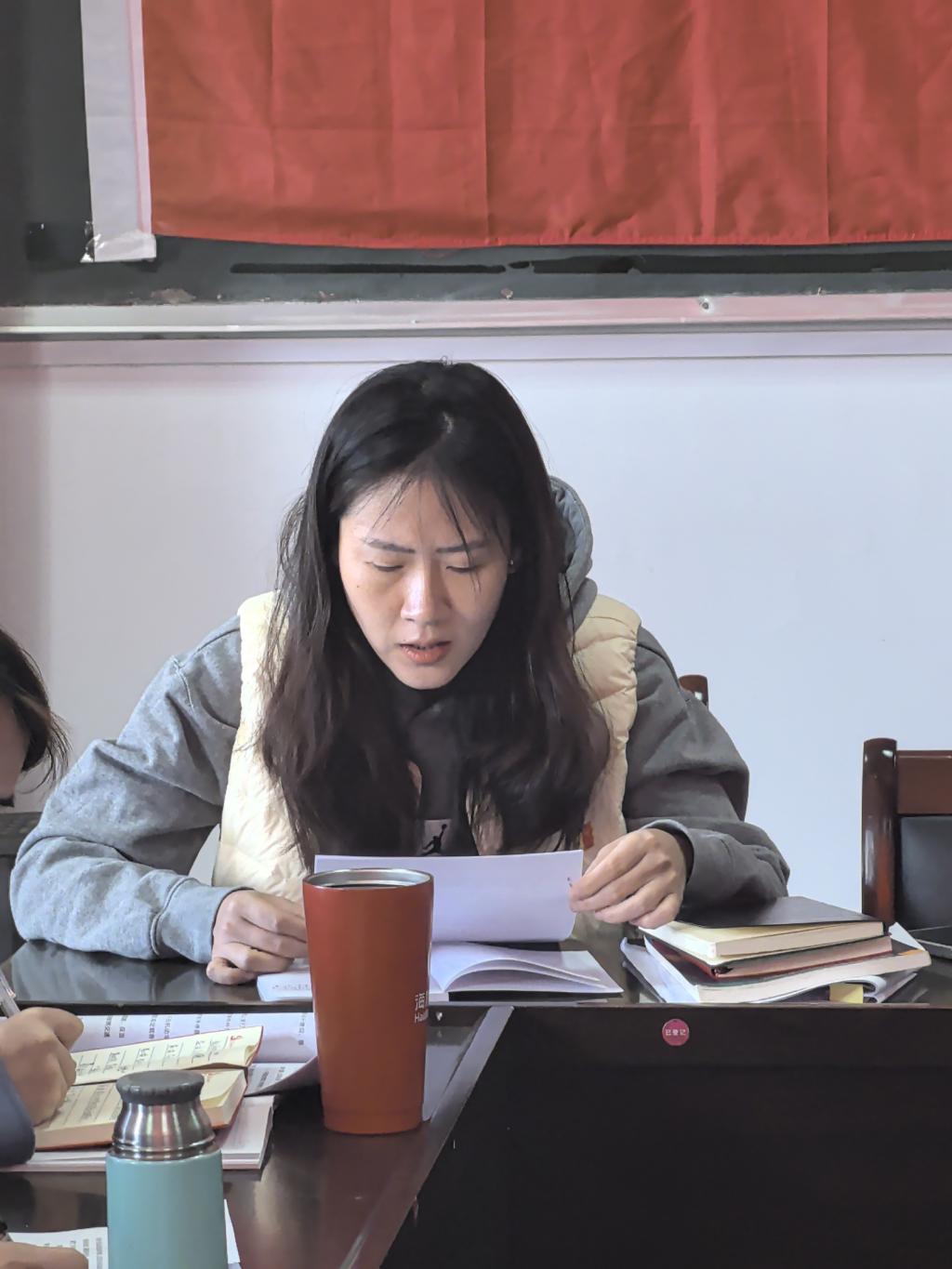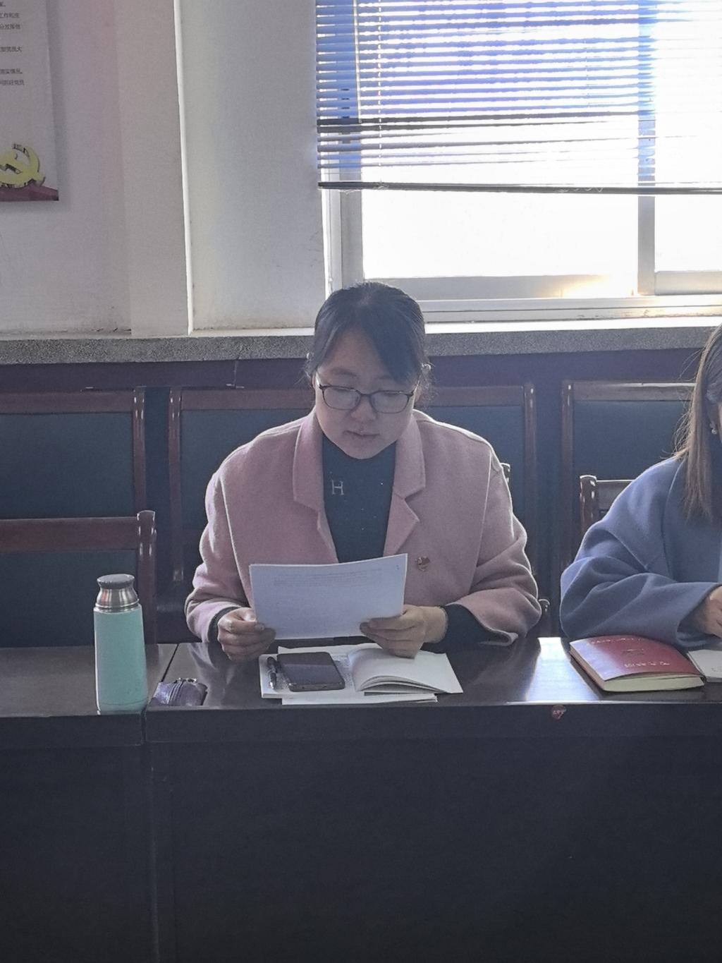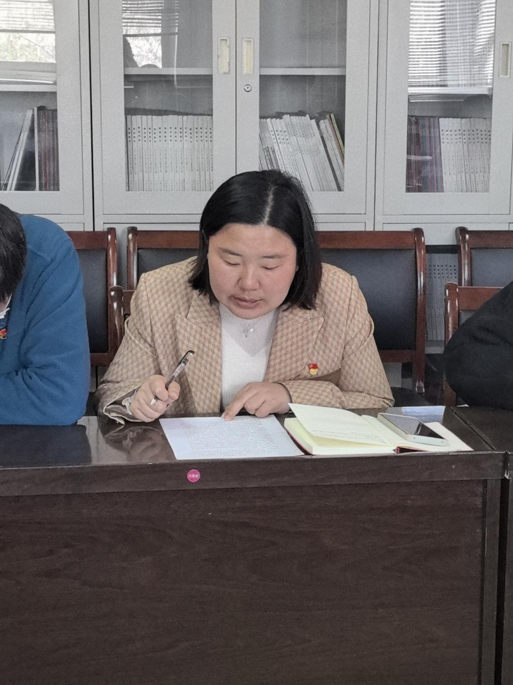 会议进行第二项:由党员任玮同志带领全体党员共同学习2025年政府工作报告。