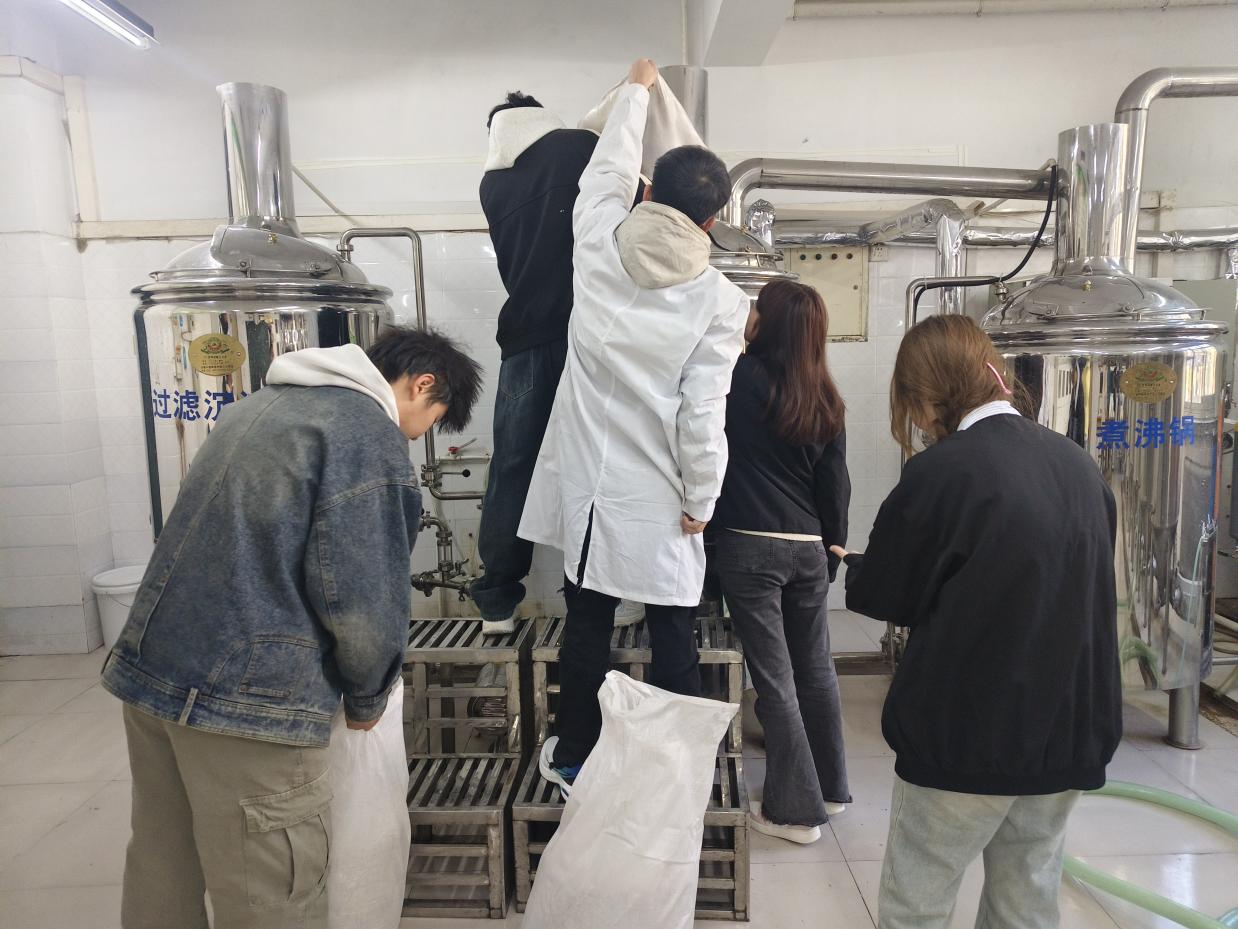 活动当天,学生们在专业老师的带领下,深入了解了啤酒的历史文化、酿造工艺及生产流程。从麦芽的粉碎、糖化、发酵到最后的灌装,学生们亲身参与每一个环节,亲手操作设备,体验了啤酒制作的完整过程。在实践过程中,学生们不仅学习了啤酒酿造的科学原理,还深刻体会到团队协作的重要性。这次实践让他们受益匪浅,不仅拓宽了视野,还增强了动手能力和创新意识。