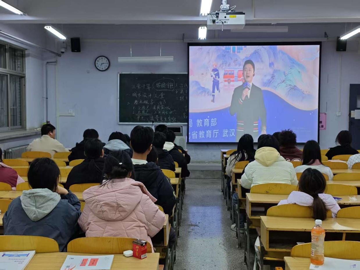 为深入贯彻落实河南省教育厅与河南省消防救援总队办公室联合通知要求,进一步提高我校学生的消防安全意识和自防自救能力,坚决防范和遏制火灾事故发生,我校于3月18日组织全校学生收看了2025年春季全国高校消防安全公开课。此次公开课采用线上直播的方式进行,全体学生积极参与。