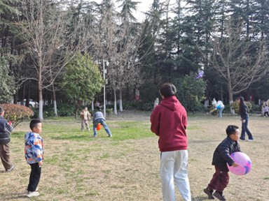活动当天,同学们满怀期待地来到陕州公园。园内春光明媚,繁花似锦,同学们漫步在公园小径,一边欣赏着烂漫春光,一边交流着学习和生活中的趣事,欢声笑语回荡在花草树木间。作为“一站式学生社区”建设的一部分,此次活动特别注重学生之间的互动与合作。同学们还偶遇了一群在公园玩耍的小朋友,大家热情地与小朋友们打招呼,一起做游戏、分享零食、教小朋友们放风筝。在与小朋友们的互动中,同学们不仅找回了童年的快乐,也展现了“一站式学生社区”倡导的关爱与分享精神,现场气氛温馨而融洽。