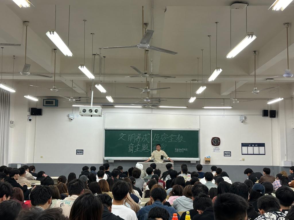 班会中,老师们从文明养成和安全教育两个方面展开。一是文明养成。老师们将课堂教育和实际事例相结合,让学生明白文明养成教育的重要性。美德重在养成,文明贵在行动。在校园内要着装得体,举止文明,遵守校规校纪,不迟到、不早退,上课认真听讲,积极回答问题,养成良好的学习习惯。在宿舍,室友相互换位思考,有问题及时解决,宿舍卫生共同打扫,养成良好的生活习惯。文明行为不仅能构建更加和谐的人际关系和校园环境,还展现出青年学生良好的道德修养。