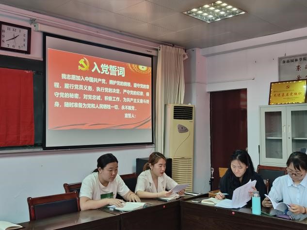 会议进行第三项:由党员任玮同志带领全体党员学习《中国共产党纪律处分条例》第七章。