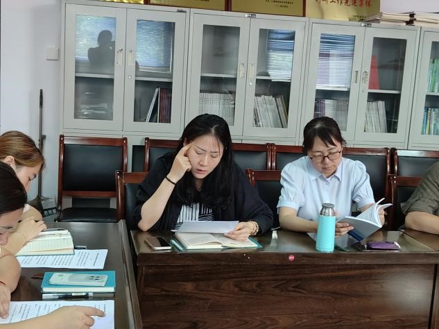会议进行第二项:由党员卫婕同志带领全体党员学习《时刻保持解决大党独有难题的清醒和坚定,把党的伟大自我革命进行到底》。
