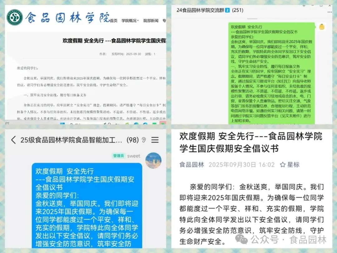 为广泛凝聚安全共识,激发全员参与积极性,学院同步开展了安全倡议活动。通过学院官网、微信公众号等平台,向全院学生发布了内容详实、情感真挚的安全倡议书,号召大家从自身做起、从细节入手,争做安全知识的传播者、安全行为的践行者与安全隐患的监督者,携手共建平安校园。