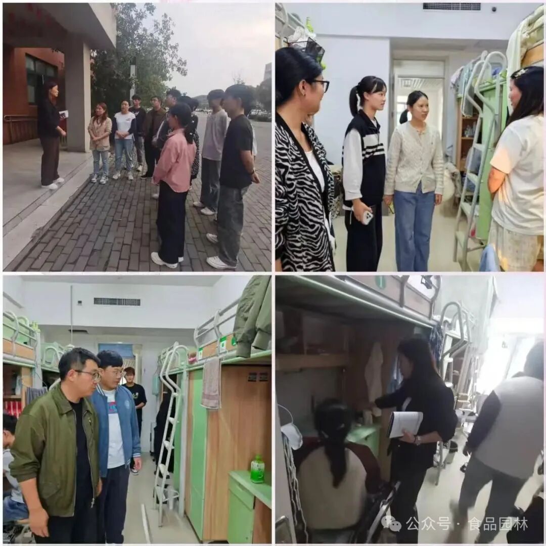 理论教育和倡议引导最终要落实到具体行动中。在党总支副书记高晓松的带领下全体专兼职辅导员及学生干部组成联合检查组,对全院160间学生宿舍进行了全覆盖的安全卫生大排查,重点检查用电安全、消防设施、内务卫生及违规电器使用等情况。针对发现的问题,现场提出整改意见,责令立即整改,切实做到排查“无死角”、整改“零容忍”。