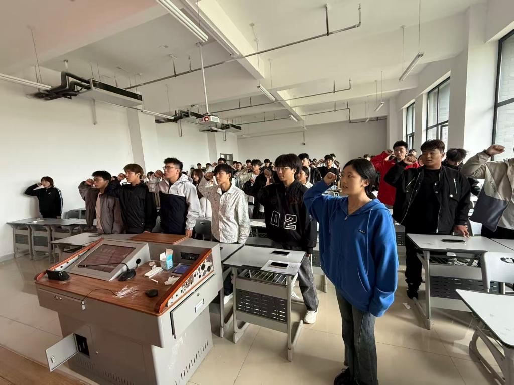 团课在庄重而热烈的氛围中拉开帷幕。全体团员高举右拳,重温入团誓词:“坚决拥护中国共产党的领导……为共产主义事业而奋斗!”铿锵誓言回荡在整个会场,进一步坚定了团员们不忘初心、团结奋斗的理想信念。