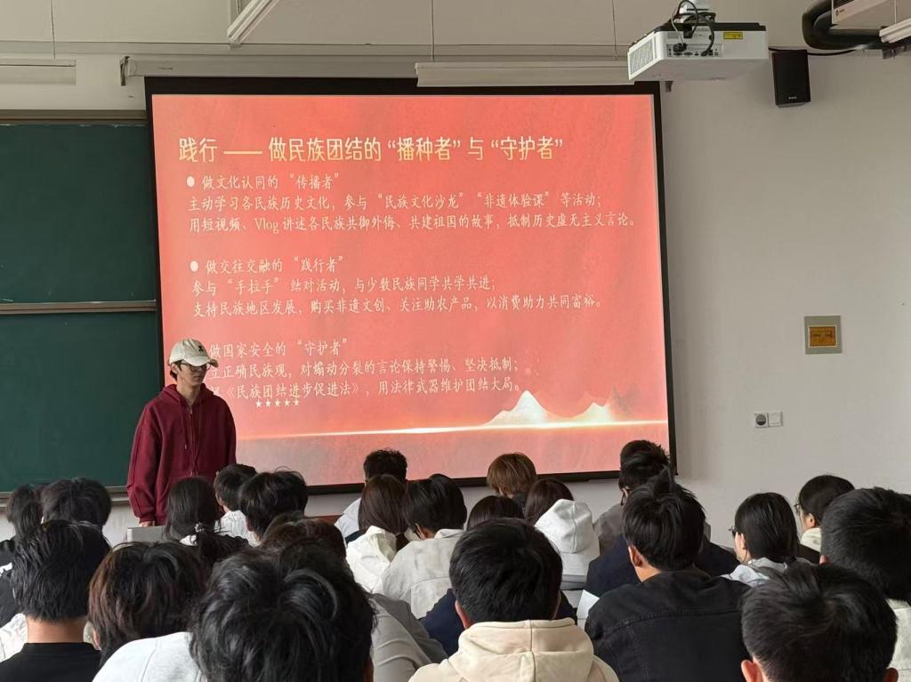 为深入学习贯彻习近平总书记关于加强和改进民族工作的重要思想,切实将铸牢中华民族共同体意识融入青年思想引领全过程,激发广大团员青年维护民族团结、促进共同发展的责任感和使命感,10月9日,suncitygroup太阳集团团总支组织开展“石榴籽一家亲”主题团课。学院全体团员齐聚一堂,在学习中凝聚共识,在交流中汇聚合力,共同传递民族团结的青春正能量。